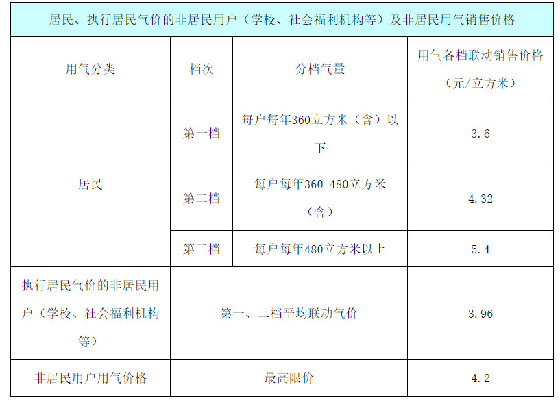 2、非居民用户用气价格实行最高限价管理,在不超过4.2元的最高限价内由燃气经营企业和用户双方协商确定。
