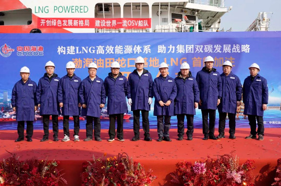 有限公司天津分公司、气电集团华北分公司、海油发展物流公司、中海油服船舶事业部有关领导及工作人员出席本次活动,共同见证渤海油田龙口基地LNG首船成功加注。