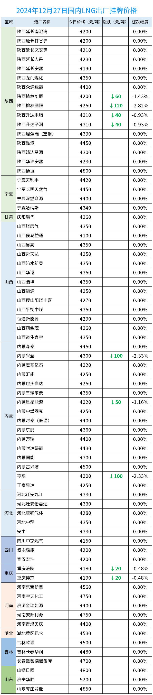 【2024.12.27】LNG市场整体报价分析——市场缺乏利好支撑,行情持续走低!